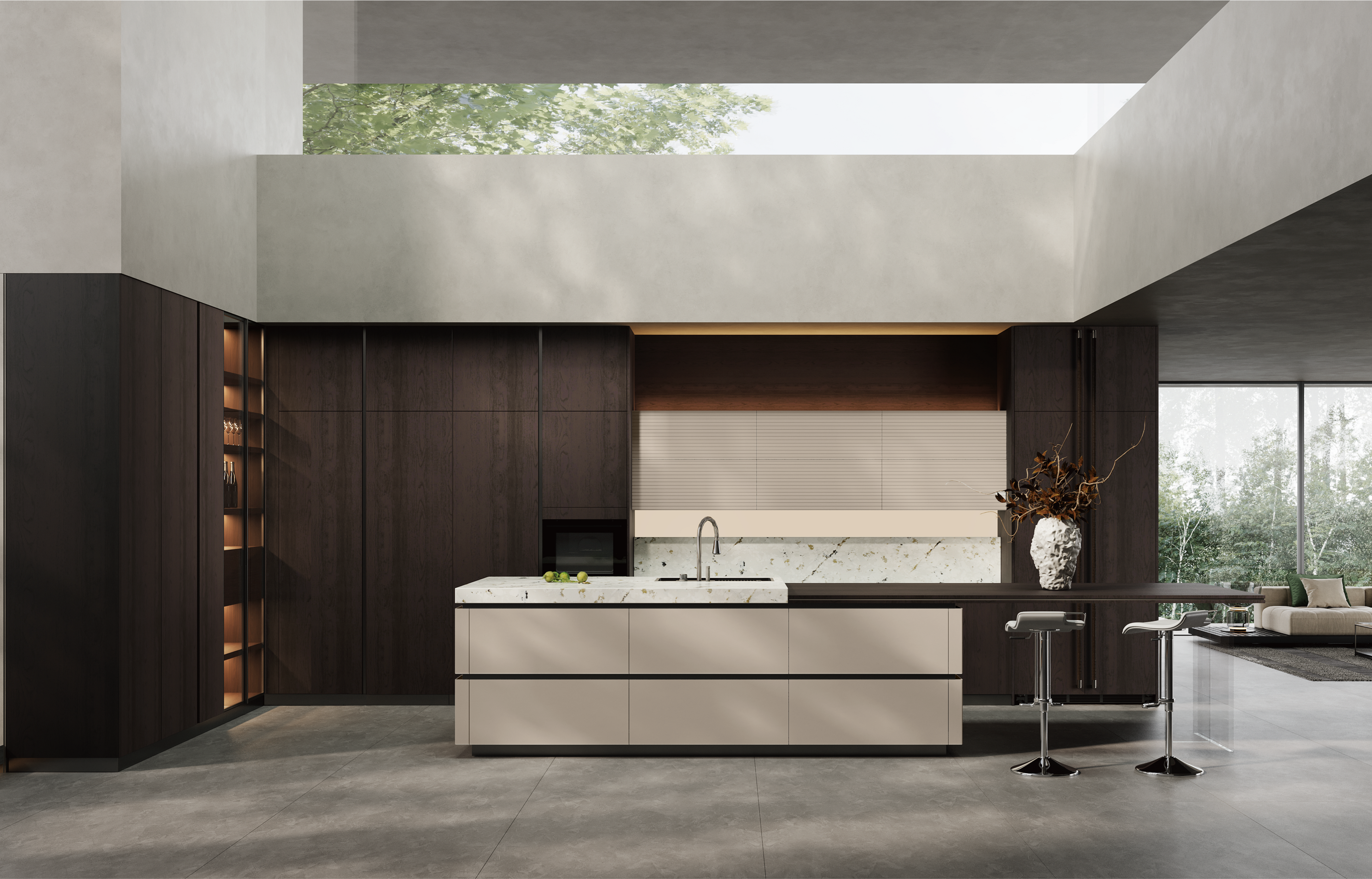 通过拉斯维加斯厨柜量体裁柜,定制出适合主厨下厨的烹饪区和洗涤区的舒适高度。